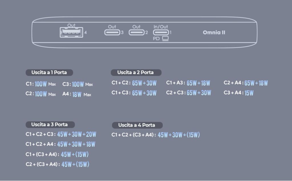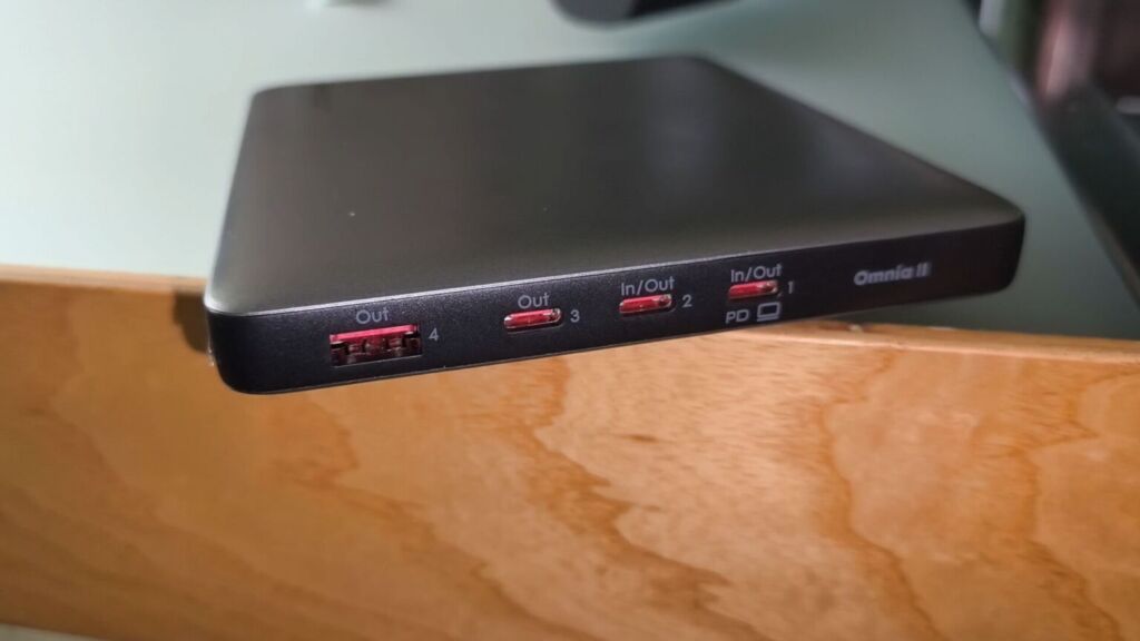 Всего у нас есть три порта USB-C, каждый из которых может выдавать по 100 Вт, но при одновременном использовании они ограничены 45, 30 и 20 Вт соответственно. Есть также четвёртый порт, USB-A, который может выдавать по 18 Вт каждый, что идеально подходит для зарядки небольших гаджетов. Таким образом, в общей сложности у нас есть четыре порта, которые представляют собой своего рода зарядную станцию для наших устройств. Представьте себе путешествие, которое вы скоро отправитесь: всё, что вам нужно взять с собой, — это кабели и ваш Amegat на 100 Вт.