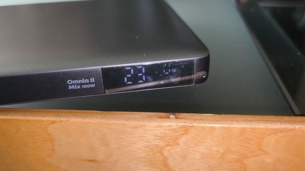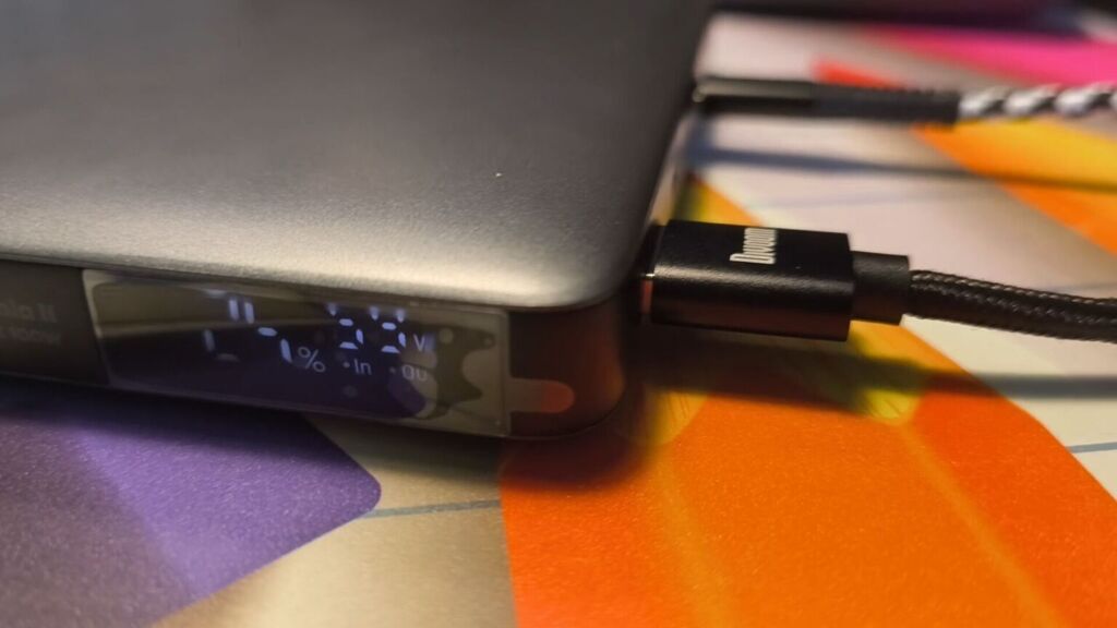 Внешний аккумулятор можно заряжать через два из двух портов USB-C мощностью до 65 Вт, достигая полной емкости примерно за два часа. С зарядным устройством мощностью 65 Вт или выше внешний аккумулятор также поддерживает сквозную зарядку, что позволяет одновременно заряжать его и другое устройство. Это означает, что вы можете подключить внешний аккумулятор к ноутбуку и зарядному устройству USB-C и заряжать оба устройства одновременно, не меняя кабели после завершения зарядки. Также предусмотрен режим зарядки с низким током для небольших аксессуаров, таких как наушники (что предотвращает отключение внешнего аккумулятора при зарядке устройств, которым требуется лишь небольшое количество энергии), а также превосходный дисплей, отображающий напряжение и оставшийся заряд.