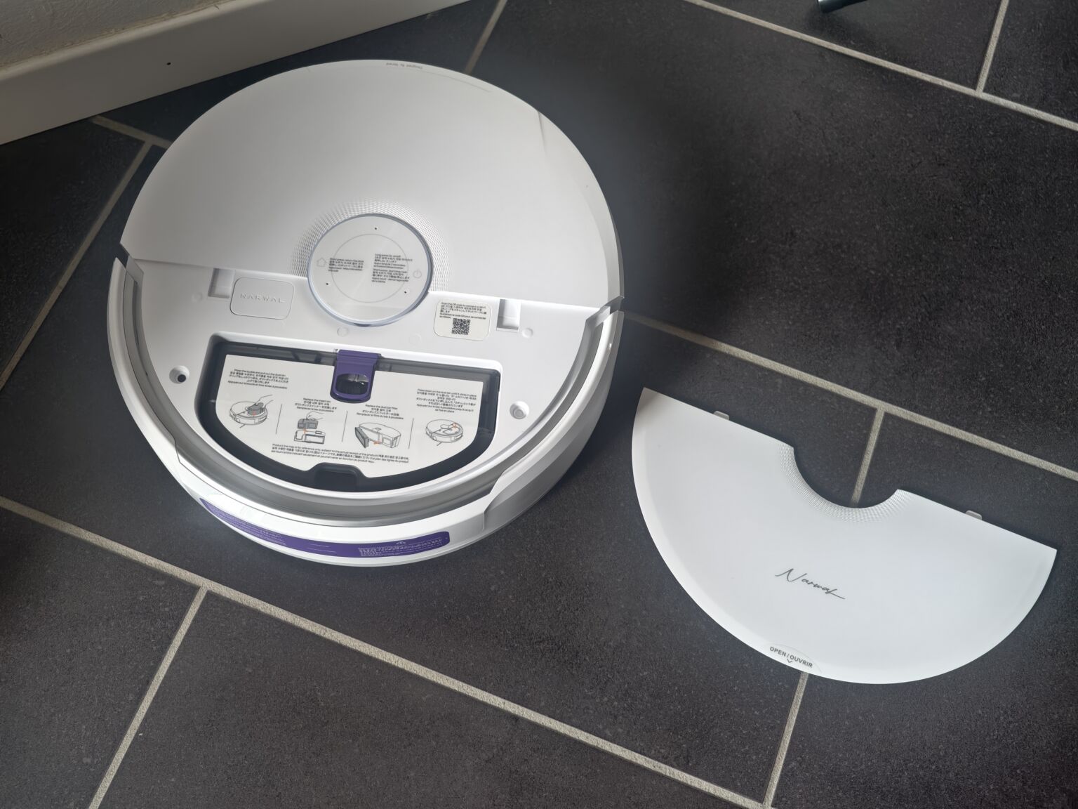Под съёмной полукрышкой находится пылесборник, который автоматически опорожняется после каждой уборки. Вы также можете очищать его по мере необходимости через приложение или вручную, сняв с робота. Внутренний пластиковый контейнер очень удобен: его легко очистить, просто вынув из основного контейнера. Также имеется фильтр, который можно периодически продувать, если он сильно загрязнён. Фильтр можно промывать под проточной водой, но обязательно тщательно просушите перед повторным использованием.