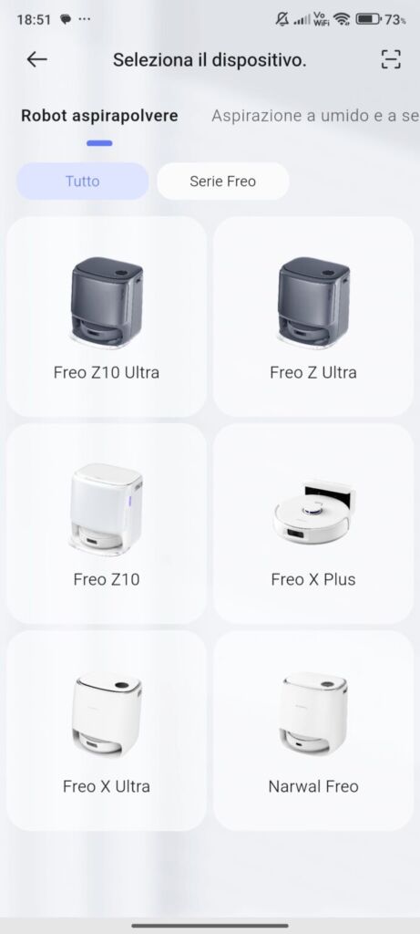 Но начнём с самого начала: установите приложение NARWAL из магазина приложений на вашем смартфоне, зарегистрируйтесь, включите Bluetooth и определение местоположения, и вы попадёте на экран выбора устройства. В моём случае, когда я получил тестовый продукт, нужной модели ещё не было в списке, поэтому я добавил её, отсканировав QR-код (кнопка справа вверху). Но не волнуйтесь, когда устройство поступит в продажу, вы найдёте его в списке доступных товаров (выберите устройство). После выбора Narwal Flow вам нужно будет просто подключить его к сети Wi-Fi, и всё.
