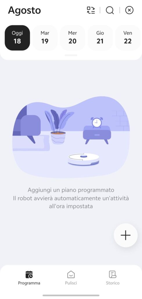 На главном экране находим ссылку «программа” внизу слева. Это меню будет использоваться для планирования ежедневной/еженедельной уборки.