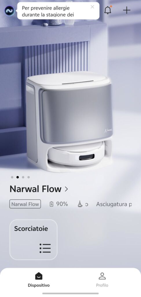 Как и в предыдущих моделях, фирменные технологии Нарввал как система визуального восприятия NarMind™ Pro на основе архитектуры с двумя процессорами, с двумя датчиками зрения ПОЛНЫЙ HD RGB-ДИСПЛЕЙ и алгоритмы искусственного интеллекта обеспечивают точную навигацию и очень точное предотвращение препятствий. В сочетании с технологиями Глубокая очистка e Режим свободного разума 4.0 Наш робот-пылесос Flow распознает все загрязнения на полу — пыль, твердые предметы, лёгкие и «сильные» пятна, ковры — и, основываясь на распознанном сценарии, выбирает оптимальный метод уборки. Он сосредоточится на самых грязных участках, уменьшив нагрузку на слабозагрязнённых, приподнимет швабру при движении по ковру и увеличит давление всасывания для более качественной уборки. Одним словом, с автоматическими режимами, которые я всегда рекомендую (в нашем случае это Режим свободного разума 4.0) вам вообще не придется беспокоиться о настройке робота, потому что я все сделаю сам.