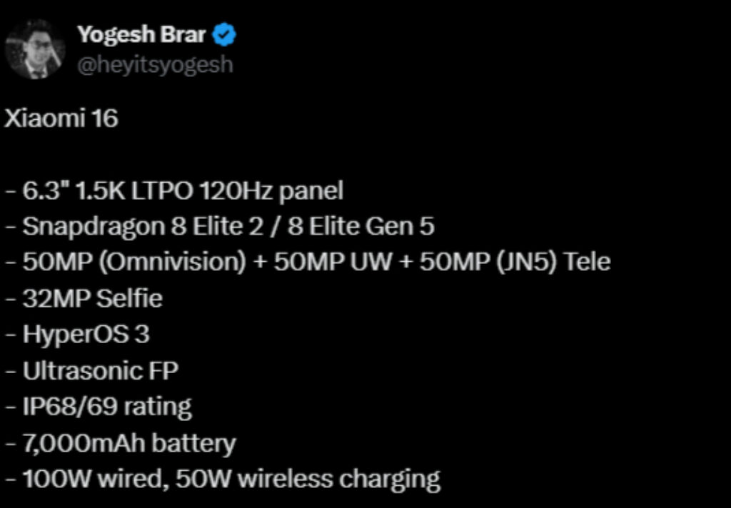 Следующая вершина диапазона Xiaomi приближается, и слухи об этом Xiaomi 16 Начинает вырисовываться весьма интересный профиль. Согласно последним данным, поделился известный инсайдер Йогеш Брар, устройство будет не только делать акцент на производительности нового процессора, но и значительно улучшит время автономной работы, надежность и качество фотосъемки, что сделает его одним из самых конкурентоспособных кандидатов на звание флагманского смартфона 2025 года.