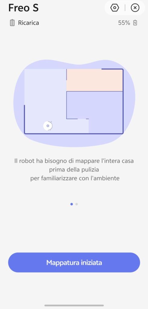 Должен сказать, что приложение очень удобное и интуитивно понятное. После включения базы и присоединения робота (вручную или кнопкой возврата к базе) зайдите в магазин приложений вашего смартфона Android/Apple и скачайте приложение. НАРВАЛПосле установки включите Bluetooth и определение местоположения, откройте его и дайте необходимые разрешения. В моём случае, поскольку у меня был тестовый экземпляр, мне пришлось установить Freo S с помощью QR-кода, но он официально появится в приложении в течение нескольких дней, поэтому вам просто нужно выбрать его из списка доступных роботов. Если вы не найдёте его, просто нажмите на значок сканирования в правом верхнем углу экрана и отсканируйте QR-код на коробке, что запустит установку Freo S.